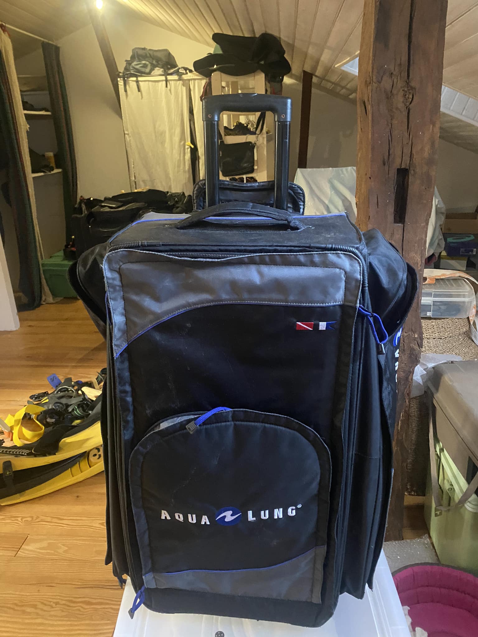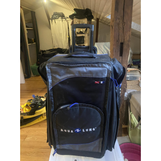 valise rigide, 2 poches latérales pour palmes , une poche de rangement sur le couvercle de la valise, fermetures éclairs pour l'ensemble de la valise et la poche. 2 sangles de portage à dos