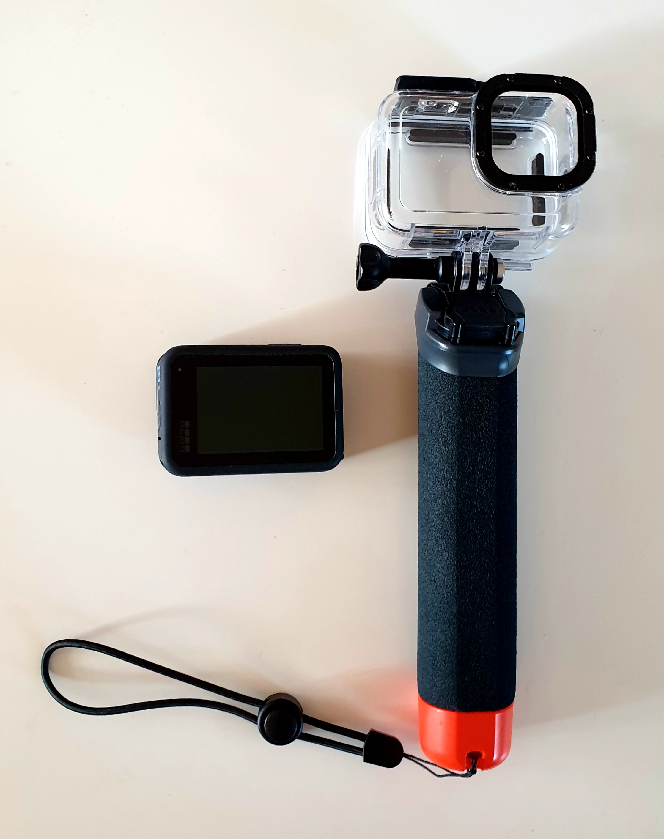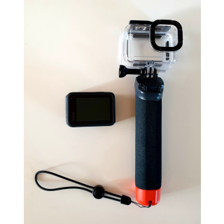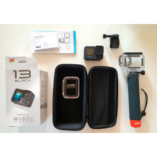 GoPro BLACK13 dernier modèle avec caisson étanche jusqu'à 60 mètres, étui, poignée flottante, carte micro SD 64 GB.